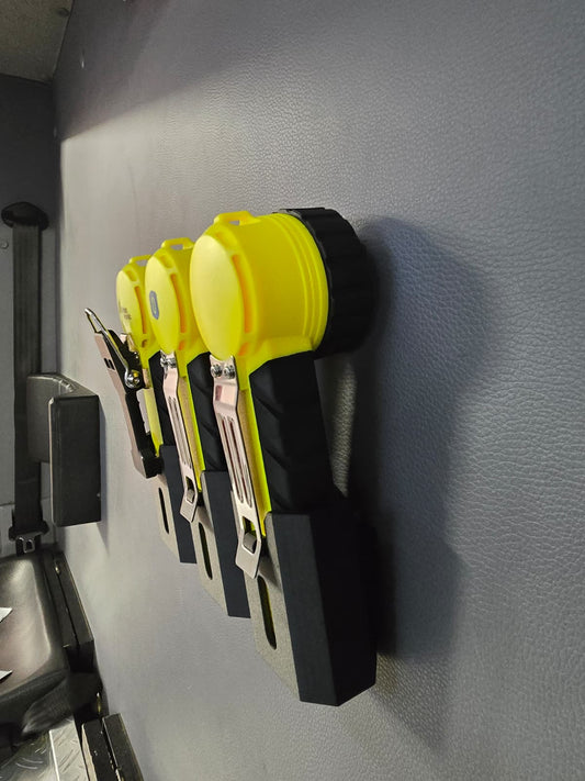 Mit einer passgenauen Wandhalterung können Einsatzlampen in Gebäuden oder im Einsatzfahrzeug montiert werden. Die Lampen werden damit stabil geschützt und bleiben jederzeit griffbereit.